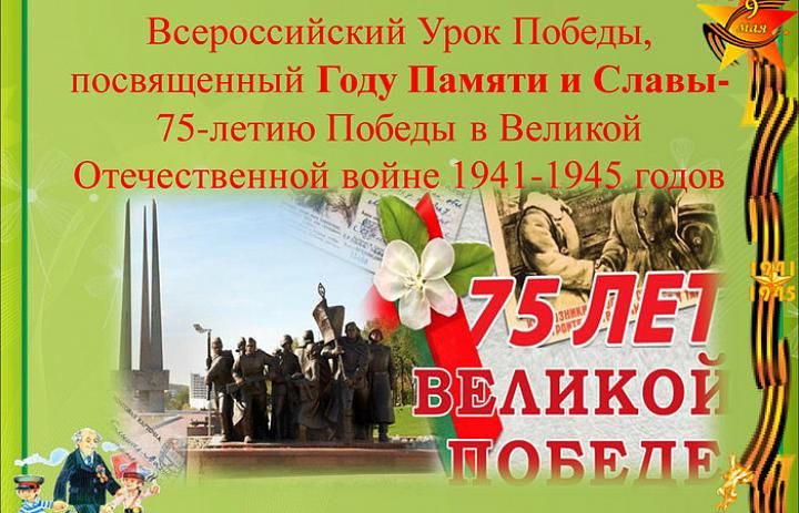 01 сентября 2020 года для все ученики нашей школы примут участие во Всероссийском Уроке Победы, посвящённом Году Памяти и Славы - 75-летию Победы в Великой Отечественной Войне 1941-1945 годов.